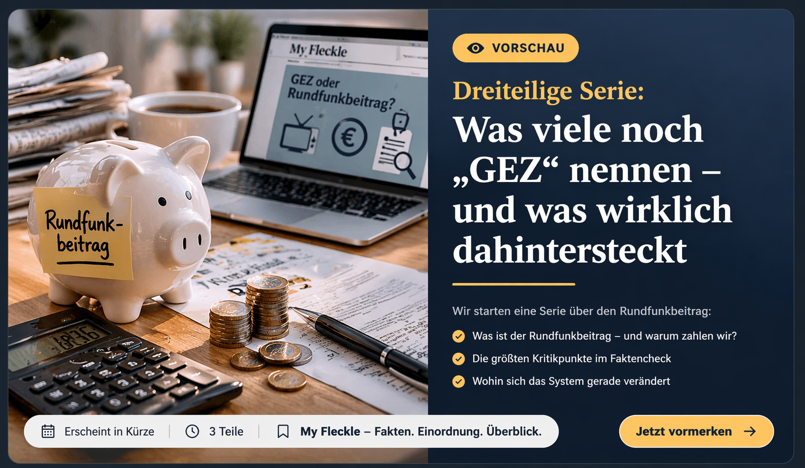 My Fleckle nimmt das Thema in einem Dreiteiler in Ruhe auseinander: Was der Rundfunkbeitrag eigentlich ist, warum die Kritik so hartnäckig bleibt und welche Reformen jetzt auf dem Tisch liegen.